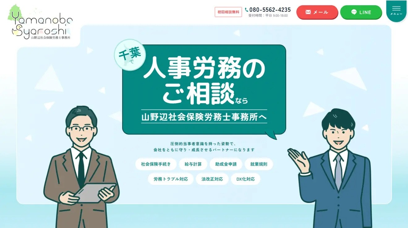 「千葉で一番相談しやすい社会保険労務士」をコンセプトに、社会保険労務士事務所の堅い印象を払拭し、地域に密着した若い力とユーザーに寄り添った提案力が伝わるサイトを目指しました。
