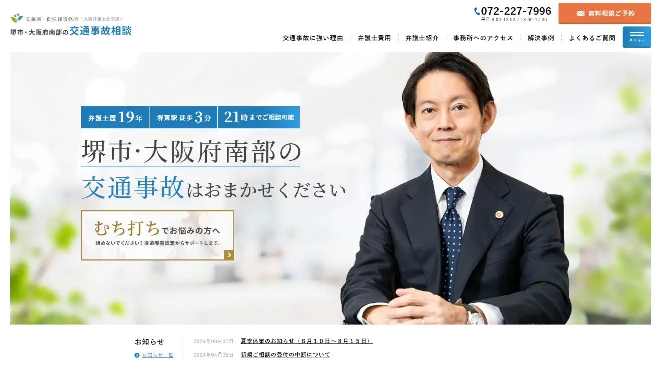 抱えている問題が弁護士に相談できるのか不安なユーザーに向け、取扱業務を明記し、解決事例を掲載することで安心して相談を依頼できるサイトにしました。