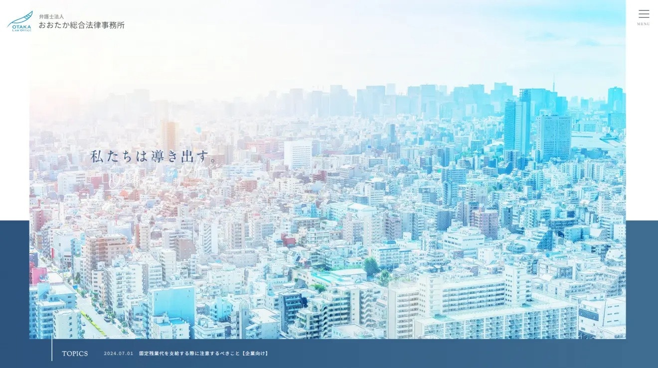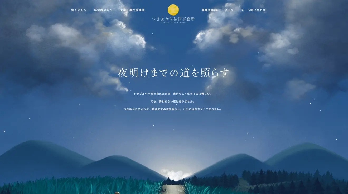 「一歩先の未来を明るく照らす」をコンセプトに、平穏で心安らかな日常を感じるファーストビューから、事務所の使命感や社会貢献に対する思いがユーザーへ伝わるサイトを目指しました。