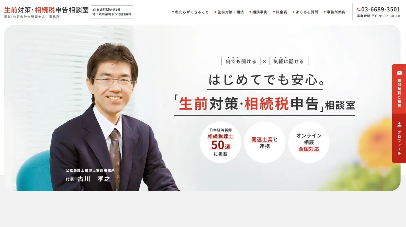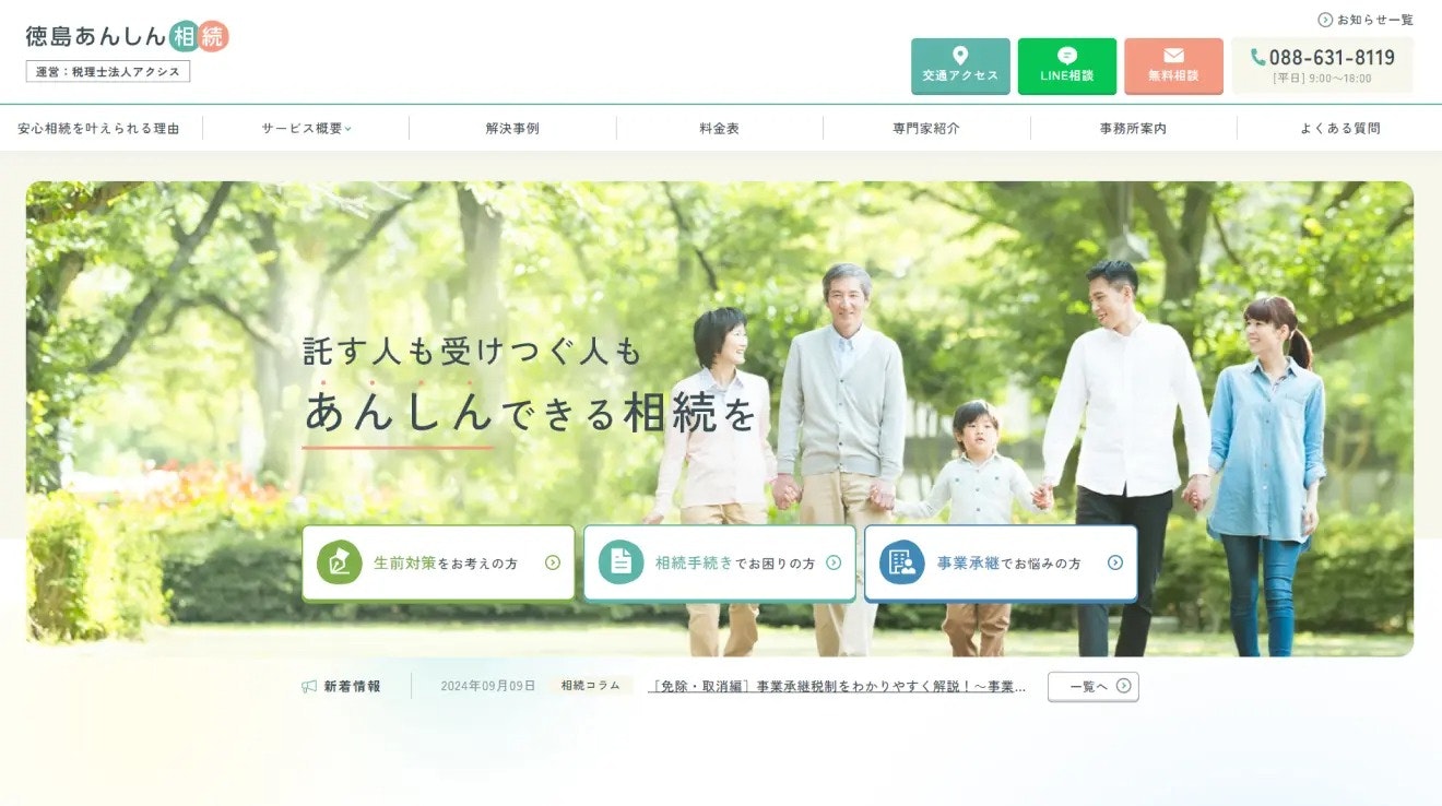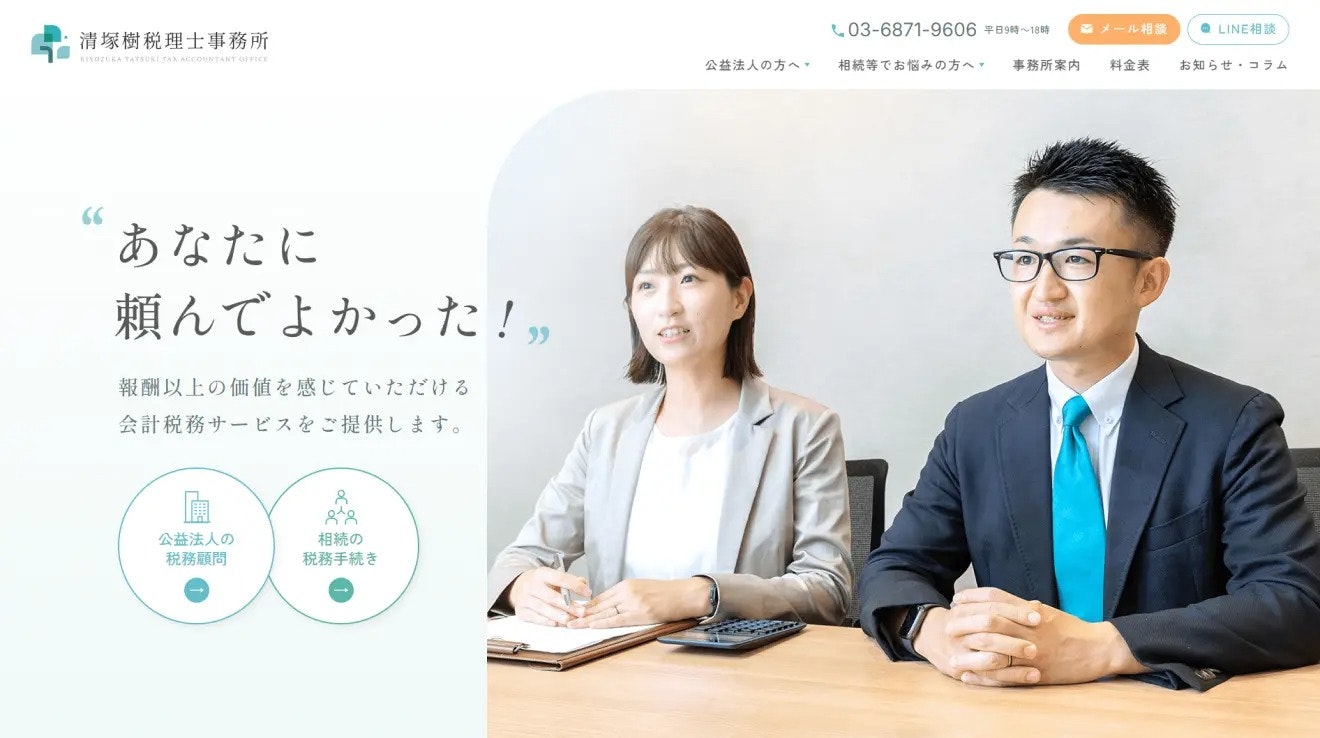 公益法人と相続・事業承継に関するサービスを前面に押し出し、料金表や役立つコラムを掲載することで、信頼感と専門性がユーザーにしっかり伝わるサイトを目指しました。