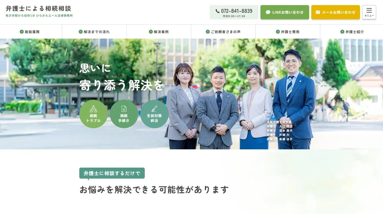 初めての相続問題への不安に寄り添い、解決事例に事務所からの提案と担当者のコメントを詳細に記載することで、ユーザーが安心して相談できるサイトを目指しました。
