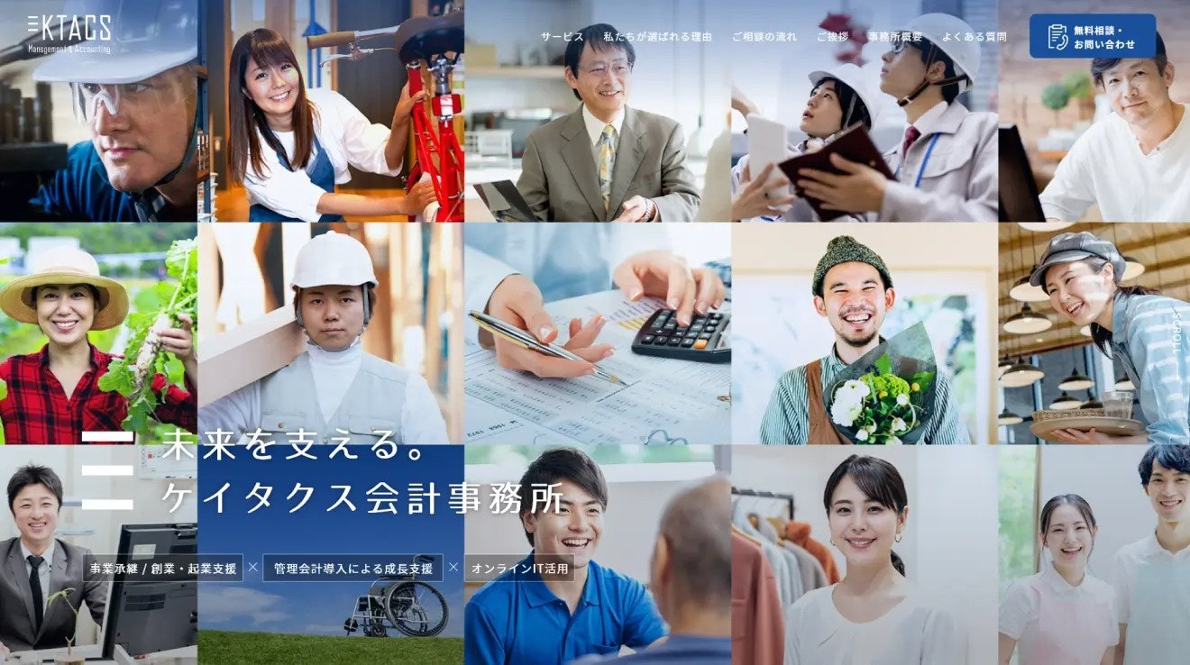 コンパクトなサイトでユーザーの導線に配慮したシンプルな設計を採用し、少数精鋭であるからこその堅実でしなやかな支援が伝わるサイトを目指しました。