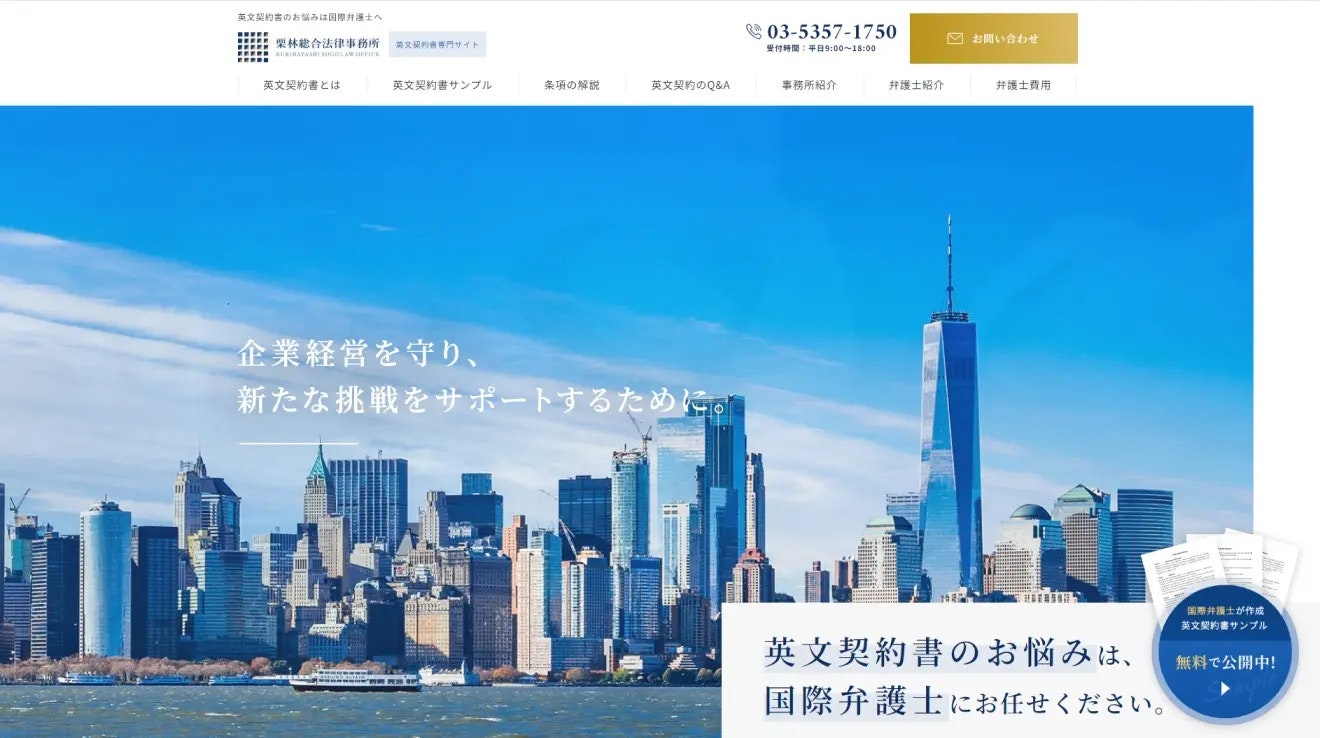 英文契約書サンプルを豊富に公開することで事務所の事業領域の広さを訴求し、さらに条項の解説コンテンツを配置することで、SEOにも対応したサイトを目指しました。