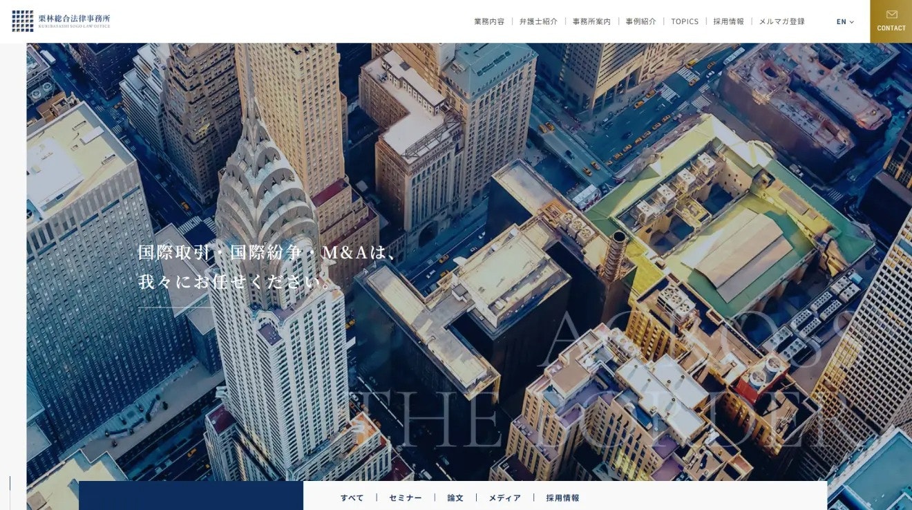 国内外の大手企業をグローバルにサポートする高度な専門性を備えたプロフェッショナルチームの強みを伝えるため、海外サイトを参考に彩度の強いコントラストで堅実性と高い格式が伝わるサイトを目指しました。