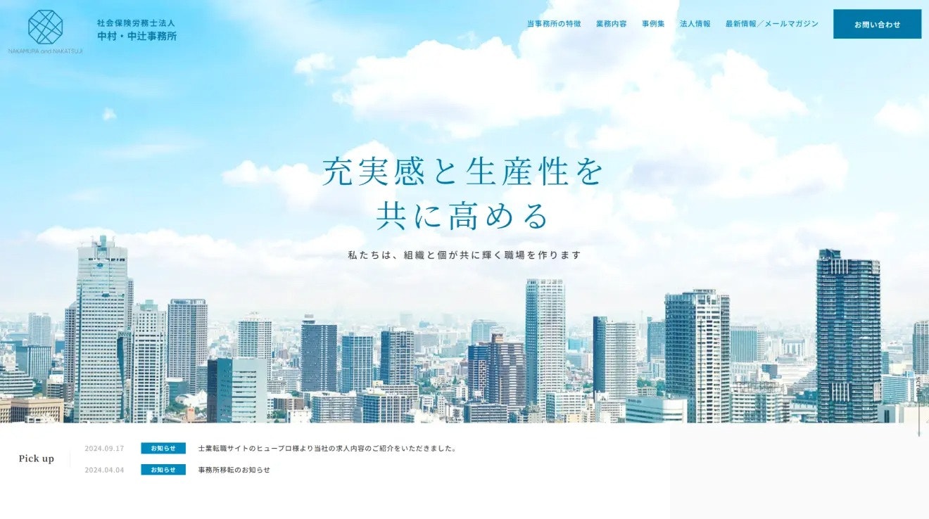 シンプルな導線でサービス内容を目的別に探すことができる設計にし、ユーザーが情報を見つけやすくしました。セミナー情報や法改正情報を掲載し、信頼性を訴求するサイトにしました。
