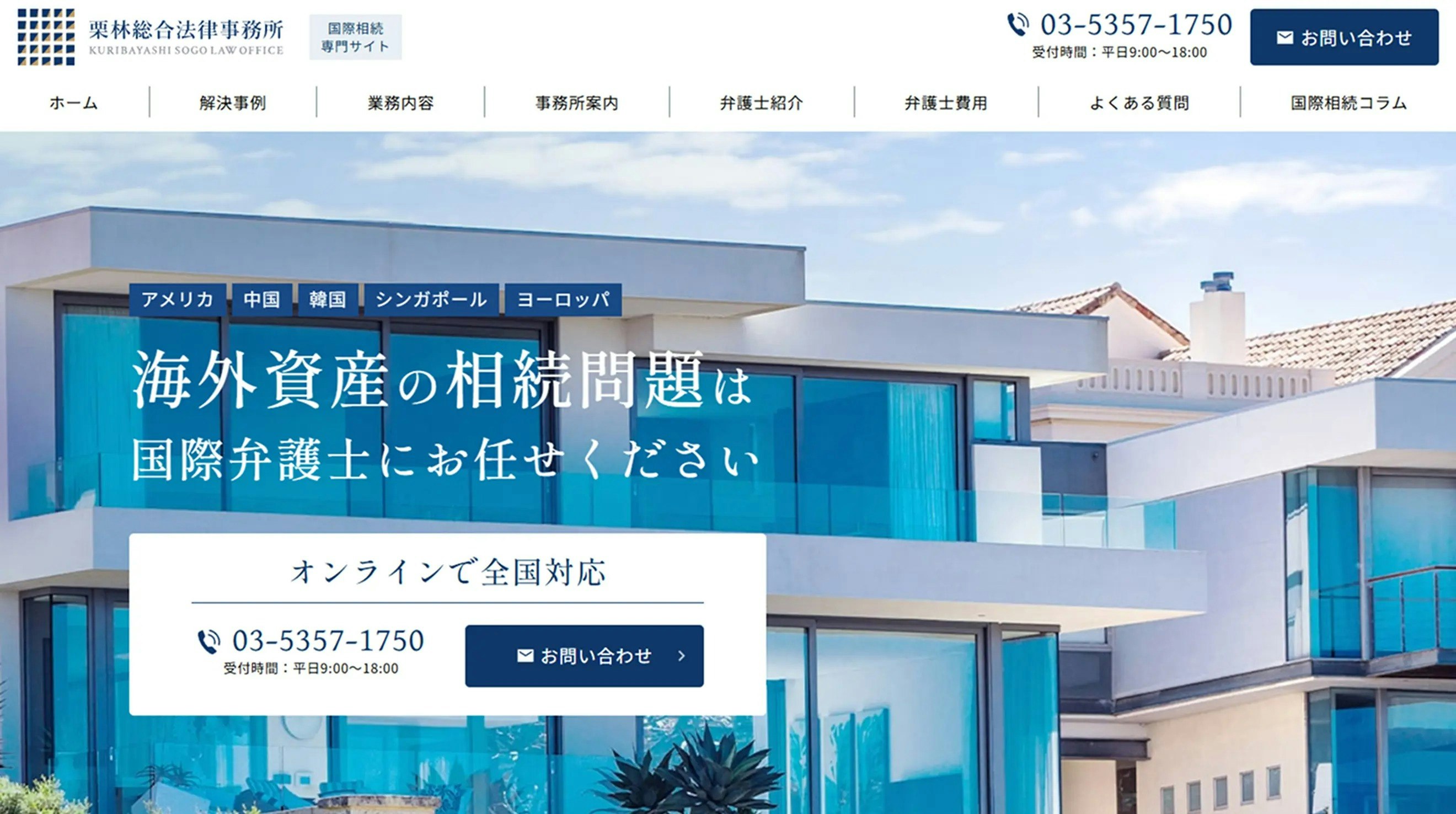 豊富な国際相続の実績をスライダーで表示し、対応力の広さや依頼の多さを視覚的に伝えることで、信頼感を高め、相談しやすいサイトにしました。
