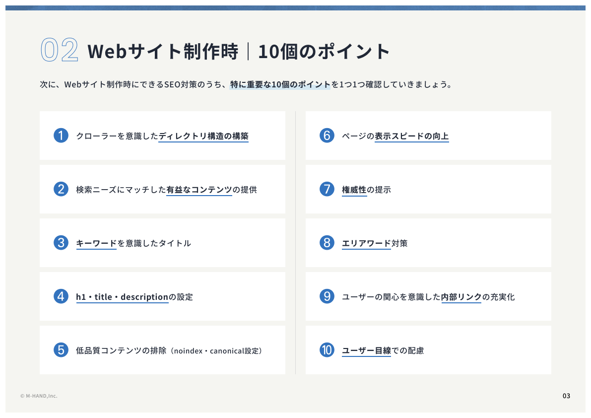 Previous Nextこの資料で得られるもの基本的なSEO対策の考え方Webサイト制作時に取り組めるSEO対策の具体例本資料では、ワイヤフレーム、デザイン、コーディング時に、Webサイト制作以外の費用を特別にかけることなく取り組めるSEO対策の内容をご紹介します。※競合企業様や詐称されたアカウントからのご請求の場合はお断りさせていただく場合がございます。会社名必須ご担当者名必須メールアドレス必須検討時期の目安検討時期の目安ホームページの制作・リニューアルを検討中ホームページ制作会社を選定中情報収集段階決まった依頼先があるその他プライバシーポリシーに同意するプライバシーポリシー外部サイトにリンクしますはこちら送信する