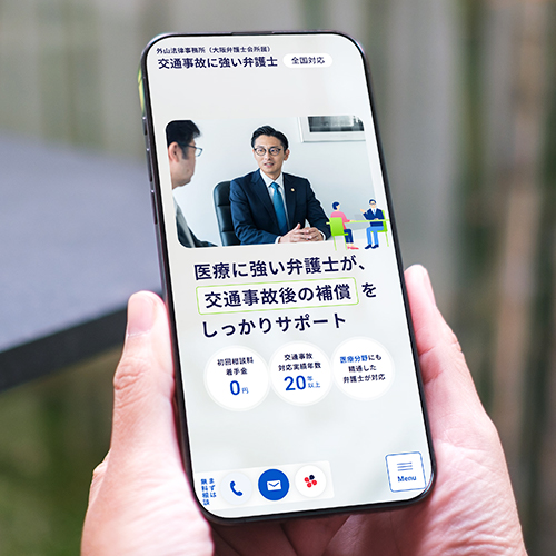 事故被害者の不安に寄り添い、専門性で解決へと導く印象を与えるサイト