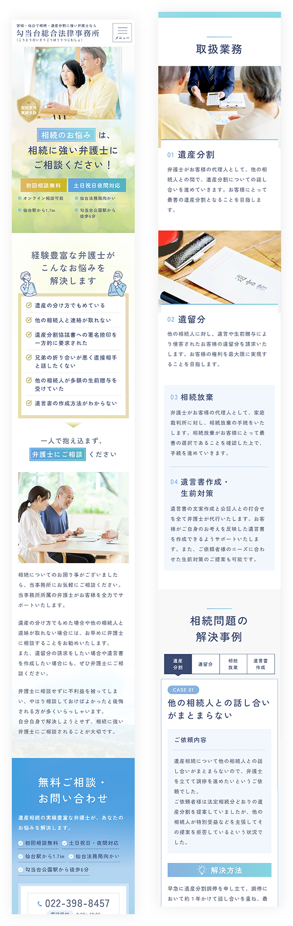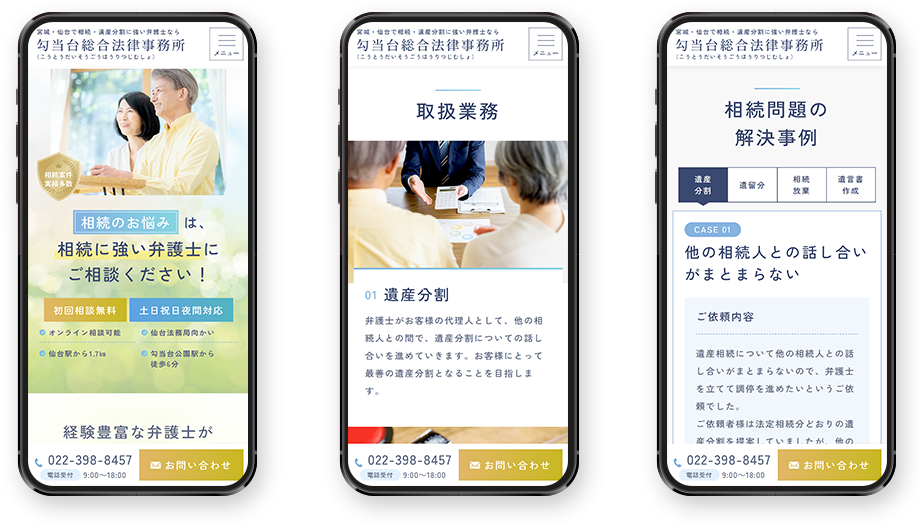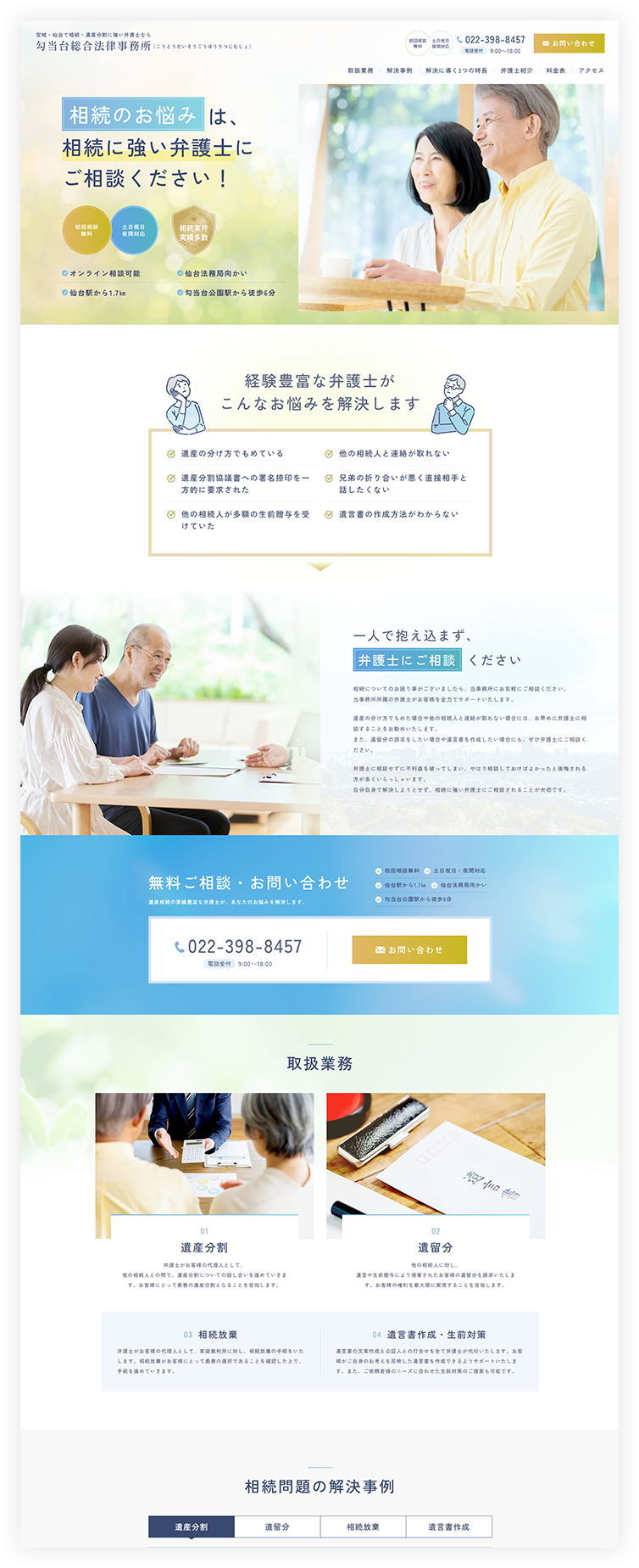 事務所の信頼性を伝えながらも、相談しやすい親しみやすさを表現したサイト